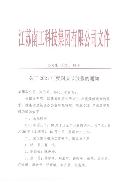 您的位置:集团首页 >> 新闻中心 >> 集团公告 >> 关于2021年度国庆节放假的通知