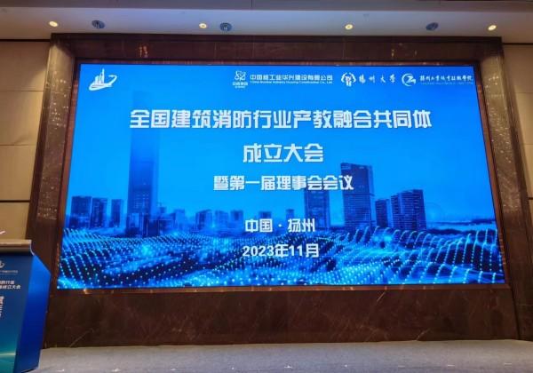 11月26日,全国建筑消防行业产教融合共同体成立大会在扬州市召开。扬州工业职业技术学院党委书记陈洪、校长倪永宏,扬州大学纪委书记邱庆峰,江苏省工业经济联合会执行副会长徐祥华,江苏省职业技术教育学会常务副会长尹伟民,中国安装协会智能化与消防工程分会会长、江苏省安装行业协会智能化与消防工程分会会长、江苏必一运动科技集团有限公司总经理陈晓,中国建设教育协会常务理事兼高职与成人教育专业委员会秘书长赵研,江苏省消防协会、江苏省建设教育协会、中国核工业华兴建设有限公司及相关高校、行业企业等100多人出席了成立大会。