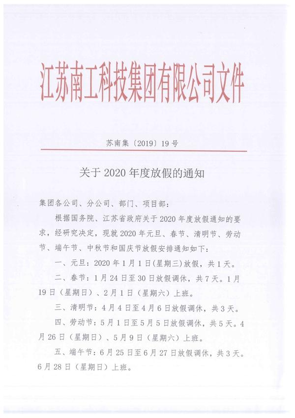 关于2020年度放假的通知