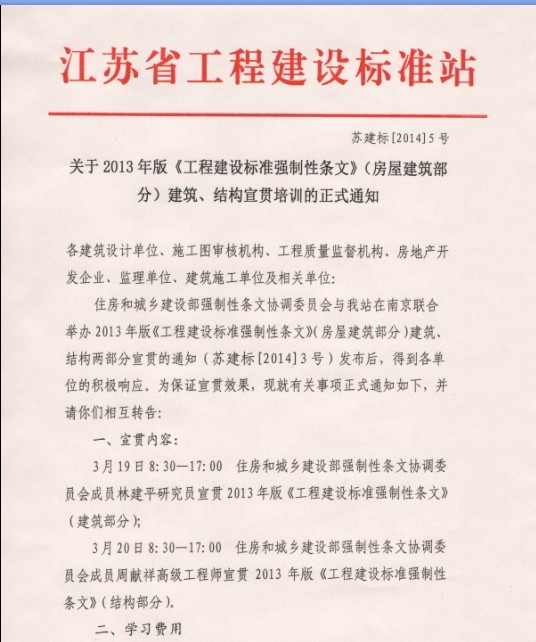 转发“关于2013年版《工程建设标准强制性条文》(房屋建筑部分)建筑、结构宣贯培训的正式通知”