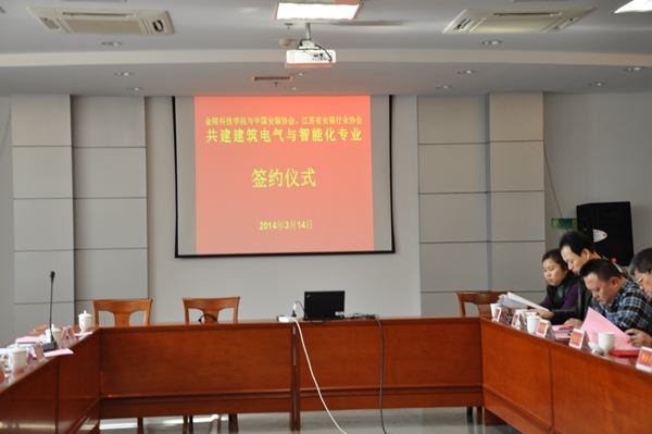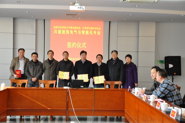 2014年3月14日,金陵科技学院与中国安装协会智能化与消防工程分会、江苏省安装行业协会智能消防电子专业委员会签订了共建“建筑电气与智能化专业”的协议。出席协议签订仪式的有金陵科技学院副校长冯年华、金陵科技学院教务处副处长吴钟鸣、金陵科技学院机电工程学院院长鞠全勇、党总支书记赵士安、副院长周扩建、郑李明、副书记陈建、楼宇系主任牟福元等领导和老师。江苏省安装行业协会会长邹金林;中国安装协会智能化与消防工程分会会长、江苏省行业协会智能消防电子分会会长、江苏必一运动科技集团有限公司总经理陈晓;分会秘书长助理余晶等出席了会议。