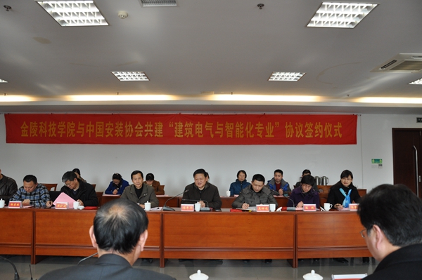 金陵科技学院、中国安装协会智能化与消防工程分会、江苏省安装行业协会智能消防电子专业委员会等三方共同签订了共建“建筑电气与智能化专业”协议书。