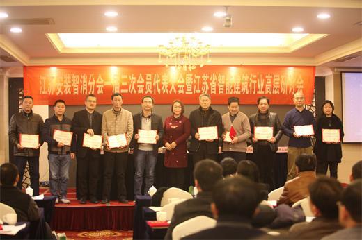 2015年12月18日,江苏省安装行业协会智能化与消防工程分会一届三次会员代表 大会暨江苏省智能建筑高层论坛在南京珍宝假日大酒店隆重召开。参加会议的有江苏省安装行业协会会长邹金林;中国安装协会智能化与消防工程分会会长、江苏省安装行业协会智能化与消防工程分会会长陈晓;分会常务副会长吴星红、副会长刘昌华、周蓉蓉、顾永松、陈曦、管清宝、陈水金、徐本裕、李旻、肖忠海、袁勇;分会常务副秘书长席天阳、副秘书长王建明、祖咏、余晶;专家委副主任叶浩生、万里远;江苏必一运动科技集团有限公司副总经理陈俊桦及专家和会员单位代表等180多人。