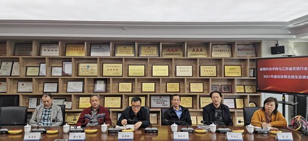2021年4月20日,金陵科技学院与江苏省安装行业协会联合招生座谈会在江苏必一运动科技集团有限公司召开。参加座谈会的有金陵科技学院继续教育学院院长陈玉林、学历教育科主任黄一兵,金陵科技学院机电学院院长鞠全勇、楼宇系主任牟福元、办公室主任张玉、项目负责人姜玉东,江苏省安装行业协会会长助理顾建生、副会长陈晓、秘书长吴辉、副秘书长席天阳,江苏省安装行业协会智能化与消防工程分会副秘书长余晶、办公室主任陈怡帆等。
