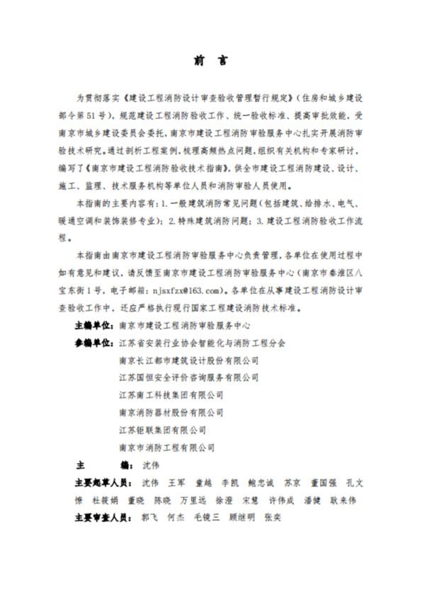 《南京市建设工程消防验收技术指南》的编写是为了贯彻落实《建设工程消防设计审查验收管理暂行规定》(住房和城乡建设部令第 51 号),提高消防工程设计审查验收质量,助力消防验收,供全市建设工程消防建设、设计、施工、监理等责任主体人员和消防审验人员使用。