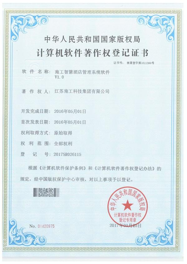必一运动智慧酒店管理系统软件证书